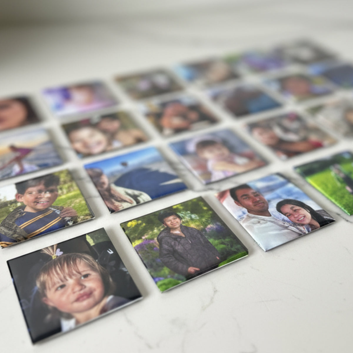 We use premium materials with high-resolution printing and a glossy finish that makes every photo shine. Each magnet is handmade with care to ensure beautiful colors and long-lasting quality.
